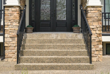 Stoops are synonymous with steps or staircases, acting as the entryway to a home or business. Concrete stoops can bring both beauty and functionality to your home, improving curb appeal and adding to an existing landscape design’s natural flow. Think of your stoops as a sort of miniature porch, providing a platform for people to wipe their shoes, shake umbrellas, or stop and smell the flowers right in front of your home.